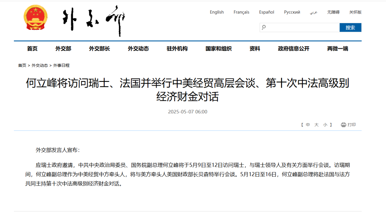 何立峰将拜候、法国并举行中美经贸高层漫谈、第十次中法高级别经济财金对话